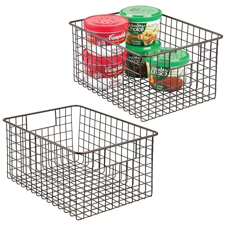 Mdesign Farmhouse Decor Metal Wire Food Storage Organizer Bin Basket With Handles For Kitchen Cabinets Pantry Bathroom Laundry Room Closets