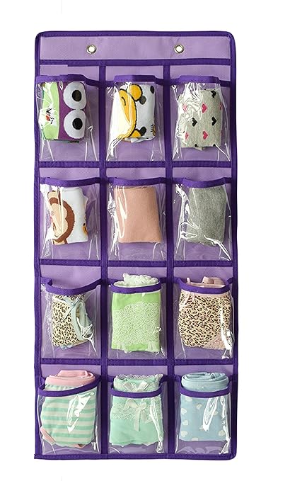 Nimes Hanging Closet Underwear Sock Storage Over The Door Jewelry Organizer 36 Clear Pockets Grey 12 9 Pockets Pack