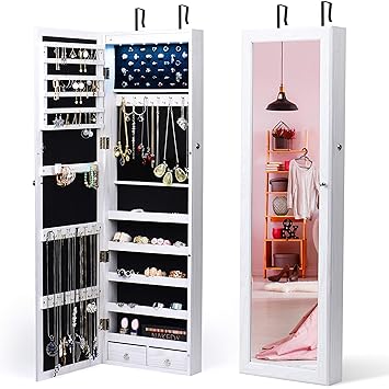 Titan Mall Jewelry Cabinet Wall Door Jewelry Organizer Mounted Lockable Jewelry Armoire Organizer With Full Length Mirror Dressing Mirror Makeup