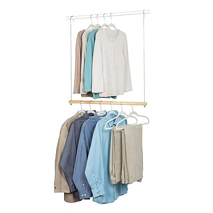 Lynk Double Hang Closet Rod Organizer Clothing Hanging Bar Chrome Wood