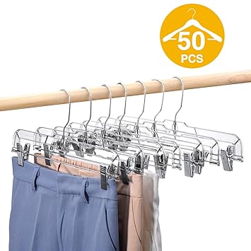 House Day 50 Pack 14 Inch Clear Plastic Skirt Hangers With Clips Skirt Hangers Clip Hangers For Pants Trouser Bulk Plastic Pants Hangers