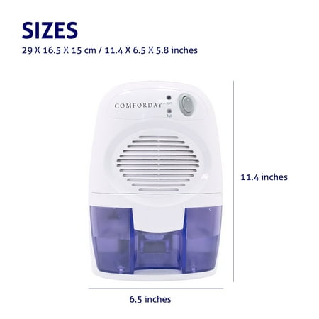 Premium Comforday Compact Dehumidifier Thermo Electric Portable Peltier Technology 17ounce Water Tank Effective Up To 1100 Cubic Feet Perfect