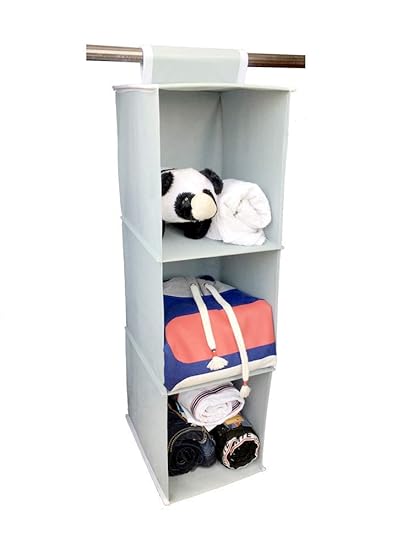 Home Store India Hanging Storage Wardrobe Closet Storage Organizer 3 Layer Non Woven Fabric Paper Board 30 X 30 X 80 Cms Blue Grey