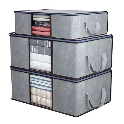 Home Store India Clothes Storage Bag 3 Pcs Closet Organizer And Storage Foldable Clothing Storage Bag For Clothes Blanket Comforter Underbed