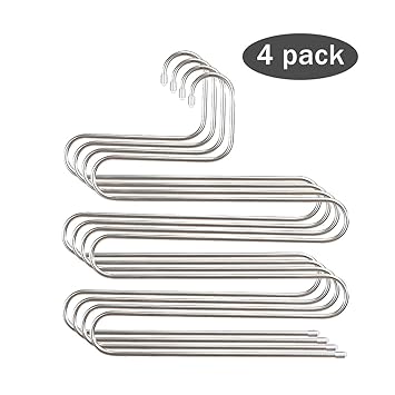4 Pack Multi Pants Hangers Rack For Closet Organization Star Fly Stainless Steel S Shape 5 Layer Clothes Hangers For Space Saving Storage